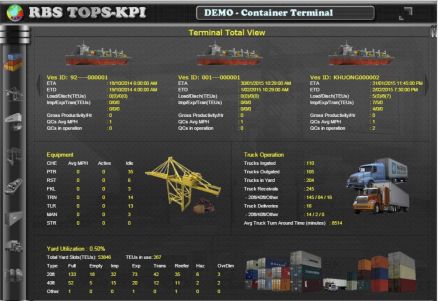 The TOPS KPI dashboard displays an instant snapshot of the performance of the current operation of your terminal – at any time and from everywhere. As a terminal manager you do not need to wait for specific reports – all relevant information is immediately available within the dashboard.