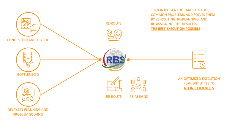 So how does it work? In every terminal operation, numerous inefficiencies occur, such as traffic, bottlenecks and planning delays. To put it simply, TOPX Intelligent takes these problems and re-plans, re-routes and re-assigns until it produces an optimized execution plan with little to no inefficiencies.